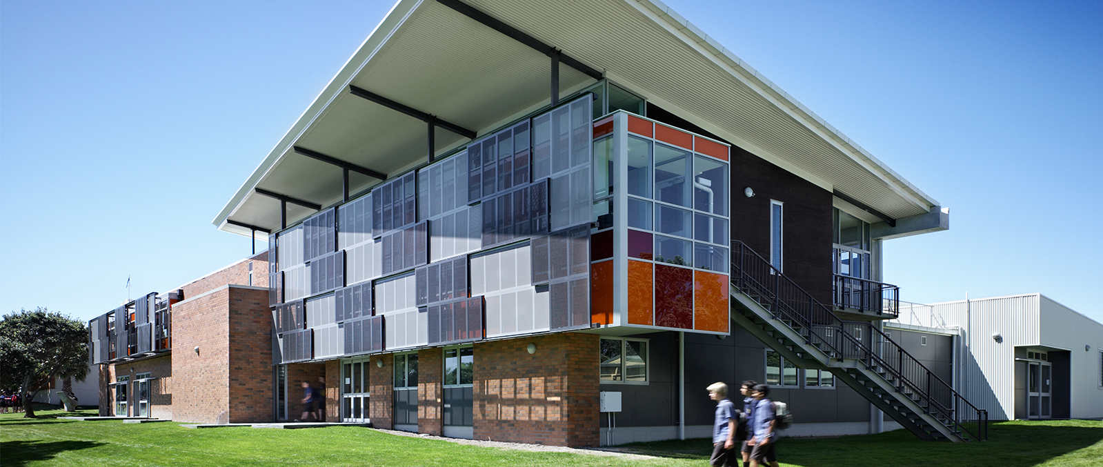 The Peter Blake Centre combines the Art and Technology departments into one building to share resources and allow combined study. After seeing the Arts/Technology Building at Auckland Girls Grammar, the Board asked Brewer Davidson to develop a similar concept. The Sir Peter Blake Art Technology Centre is sited to form the south western edge of a new academic and social hub for the school campus.